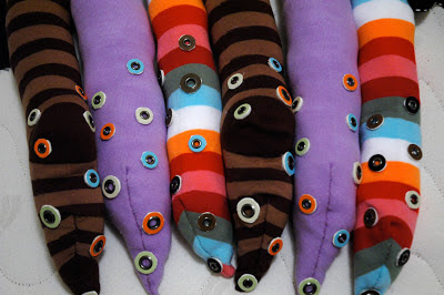 - Ράψτε ή κολλήστε τα κουμπάκια και στα 4 καλσόν δημιουργώντας τις βεντούζες.