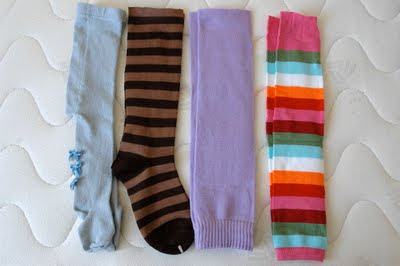 - Κόψτε το επάνω μέρος από τα τρία καλσόν έτσι ώστε να έχουν το ίδιο μήκος με τα ποδαράκια του μικρού σας.