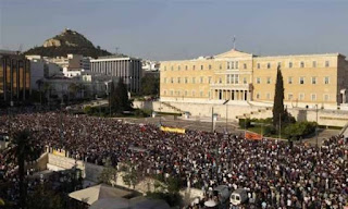 Χιλιάδες άνθρωποι μαζεύτηκαν σαν μία γροθιά & φωνάξαν συνθήματα κατά του πολιτικού συστήματος, της οικονομικής κρίσης και των περικοπών στους μισθούς ,τις συντάξεις κτλ.