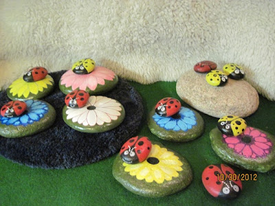 - Ζωγραφίστε μια χαμογελαστή οικογένεια από πασχαλίτσες που ξαποσταίνουν επάνω σε μεγάλα λουλούδια….