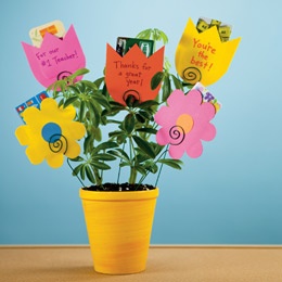 Μπορείτε ακόμα, να φτιάξετε μαζί μια γλαστρούλα με χάρτινα λουλουδάκια κολλημένα πάνω σε ξυλάκια, που θα γράφουν λόγια γλυκά για τη δασκάλα του μικρού σας.