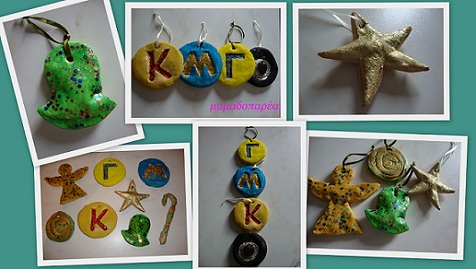 Αυτή τη φορά μάλιστα φτιάξαμε και στολίδια με τα αρχικά όλων μας.:)