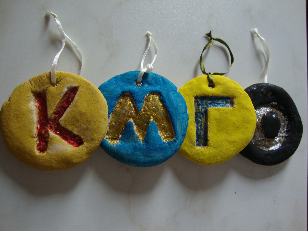 Αυτή τη φορά μάλιστα φτιάξαμε και στολίδια με τα αρχικά όλων μας.:)