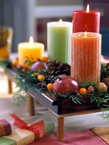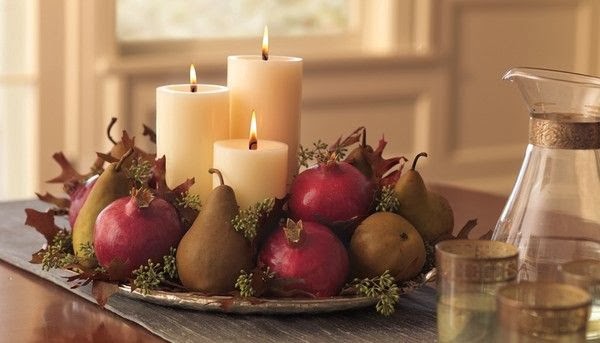 Τα μήλα και τα ρόδια εκτός που θα προσφέρουν το κόκκινο γιορτινό τους χρώμα σε οποιαδήποτε επιτραπέζια σύνθεση, θα γίνουν εξαιρετικής αισθητικής κηροπήγια απλώς ανοίγοντας στο πάνω μέρος τους μια τρύπα ή κόβοντας ένα μικρό κομμάτια για να σφηνώσετε ένα ρεσώ ή οποιοδήποτε κερί.