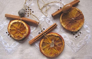 Με ξυλαράκια κανέλας συνδυασμένα με χαρτί ή ύφασμα, θα φτιάξετε πολύ όμορφα κρεμαστά στολίδια, τα στολισμένα με γαρύφαλλα πορτοκάλια είναι ιδιαίτερα εντυπωσιακά είτε σε χριστουγεννιάτικες συνθέσεις είτε ως κρεμαστές μπάλες, ενώ φέτες αποξηραμένων φρούτων κάθε είδους μπορείτε να χρησιμοποιήσετε είτε ως κρεμαστά στολίδια αλλά και σε γιρλάντες, χριστουγεννιάτικα στεφάνια κλπ.