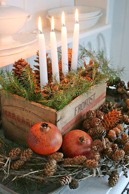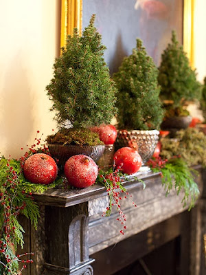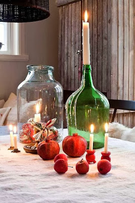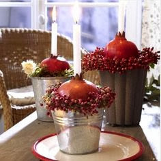 Τα μήλα και τα ρόδια εκτός που θα προσφέρουν το κόκκινο γιορτινό τους χρώμα σε οποιαδήποτε επιτραπέζια σύνθεση, θα γίνουν εξαιρετικής αισθητικής κηροπήγια απλώς ανοίγοντας στο πάνω μέρος τους μια τρύπα ή κόβοντας ένα μικρό κομμάτια για να σφηνώσετε ένα ρεσώ ή οποιοδήποτε κερί.