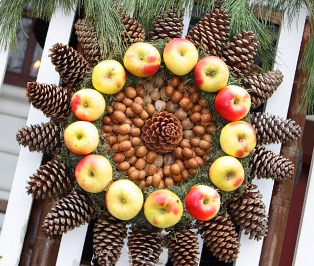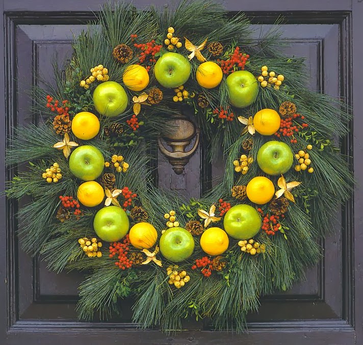 Τόσο σε φρέσκα όσο και αποξηραμένα φρούτα μπορείτε να …επεξεργαστείτε την επιφάνειά τους  με κάθε τύπου γυαλιστικό βερνίκι, χρώμα, γκλίτερ, ατλακόλ και συνθετικό χιόνι ή αλάτι κλπ. και φυσικά να τα συνδυάσετε με κάθε είδους ξύλινα-μεταλλικά ή υφασμάτινα διακοσμητικά, σκοινί, δαντέλες, κλπ. δημιουργώντας πραγματικά όχι μόνο όμορφες αλλά και οικονομικές συνθέσεις – στολίδια κατάλληλα και για δώρα.