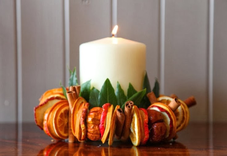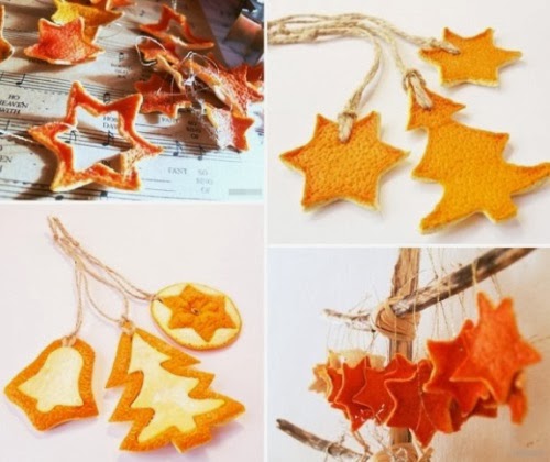 Με ξυλαράκια κανέλας συνδυασμένα με χαρτί ή ύφασμα, θα φτιάξετε πολύ όμορφα κρεμαστά στολίδια, τα στολισμένα με γαρύφαλλα πορτοκάλια είναι ιδιαίτερα εντυπωσιακά είτε σε χριστουγεννιάτικες συνθέσεις είτε ως κρεμαστές μπάλες, ενώ φέτες αποξηραμένων φρούτων κάθε είδους μπορείτε να χρησιμοποιήσετε είτε ως κρεμαστά στολίδια αλλά και σε γιρλάντες, χριστουγεννιάτικα στεφάνια κλπ.