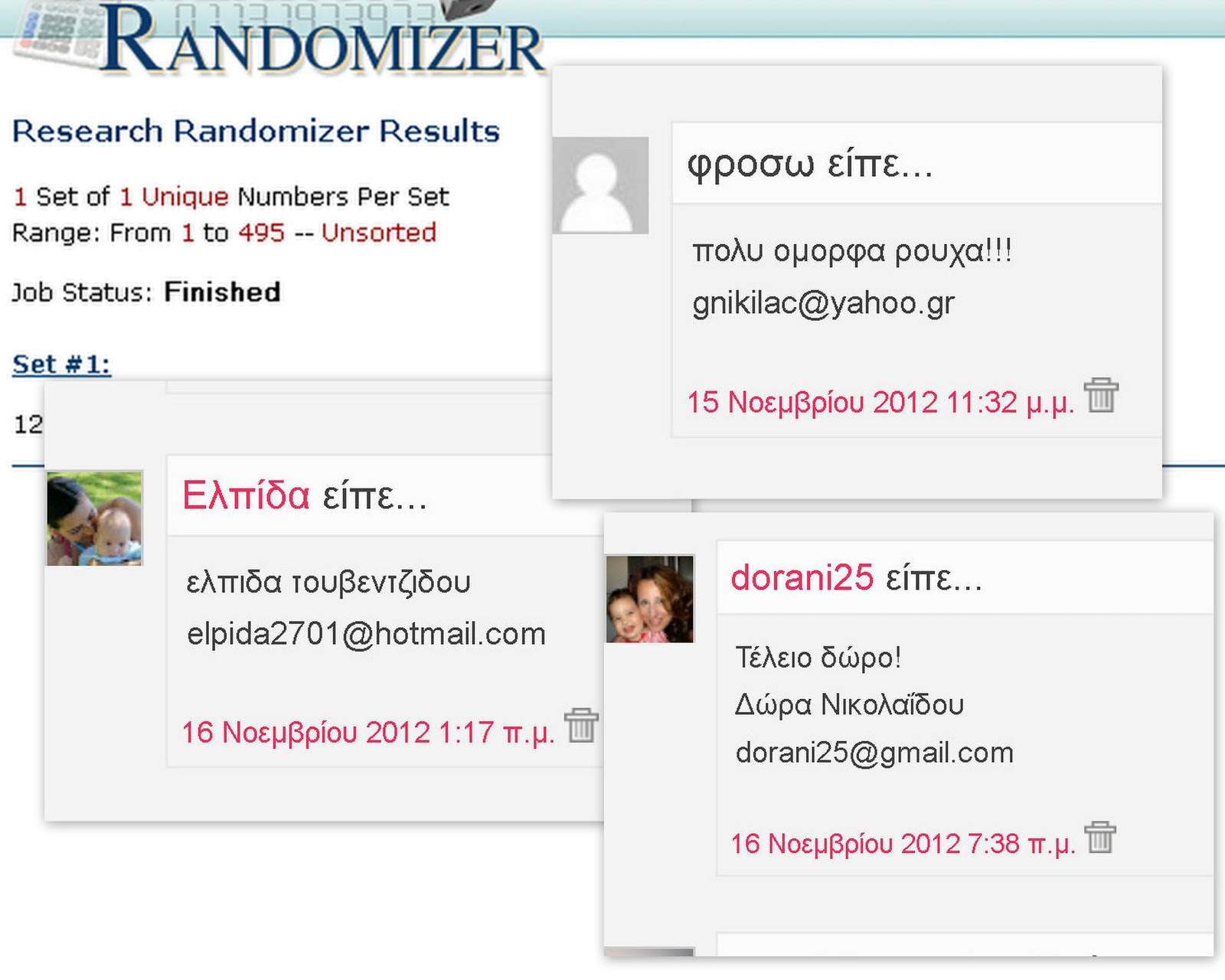 Παρακαλώ τις νικήτριες να επικοινωνήσουν με την Δήμητρα εδώ στέλνωντας με μήνυμα τα στοιχεία τους για να παραλάβουν τα δώρα τους!H διαφορετικά στείλτε μας email στο modernmoms@ymail.com