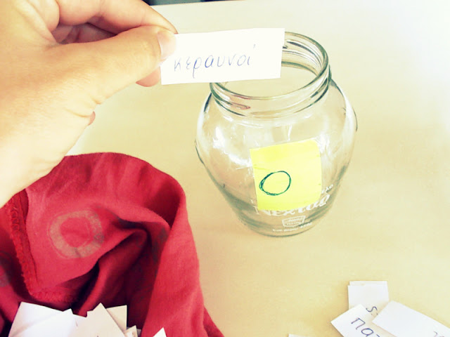 Άσκηση: Φτιάχνουμε τα δυο βαζάκια με τα χαρτάκια post it όπως στην άσκηση: Βάλε, βγάλε απο το βάζο και παίξε! Γράφουμε σε χαρτιά Α4 πολλά αρσενικά και θηλυκά ουσιαστικά στον Πληθυντικό αριθμό και τα κόβουμε. Τα τοποθετούμε ανακατεμένα μπροστά στο παιδί και το παιδί πρέπει κάθε μια λέξη που διαλέγει να σκεφτεί ποιο άρθρο παίρνει στον Ενικό αριθμό (όταν είναι ένας ή μια) και να την βάλει στο σωστό βαζάκι.