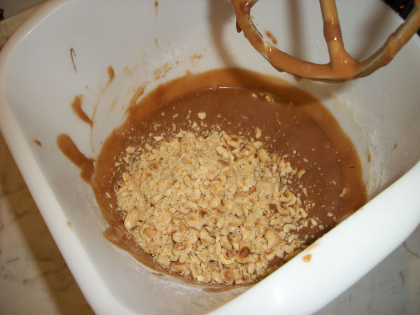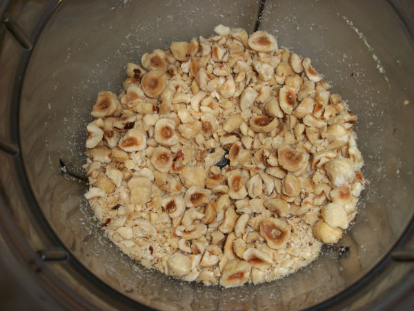 Στην συνέχεια ρίχνουμε το αλεύρι και τελευταία τα φουντούκια.