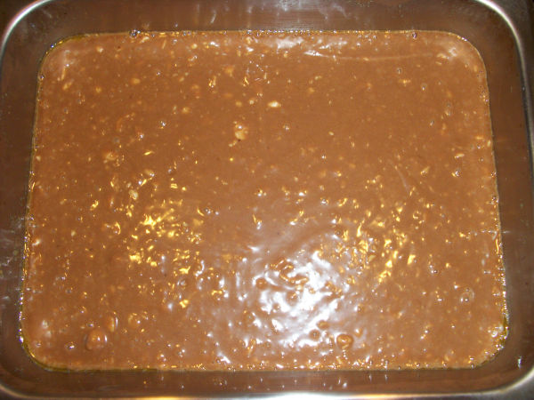 Σταδιακά προσθέτουμε τη μερέντα και το λιωμένο βούτυρο.