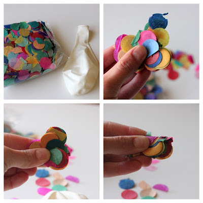 - Εφαρμόστε το χωνί στο στόμιο του μπαλονιού και ρίξτε μέσα μικρή ποσότητα κομφετί….