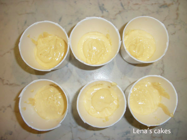 Xωρίζουμε το μίγμα μας σε 6 ποτηράκια.(περίπου 3 κ.σ στο καθένα)