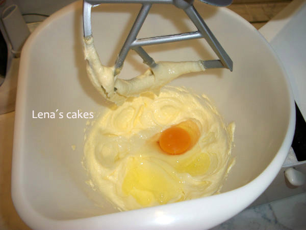Χτυπάμε το βούτυρο με τη ζάχαρη να ασπρίσει και να αφρατέψει.