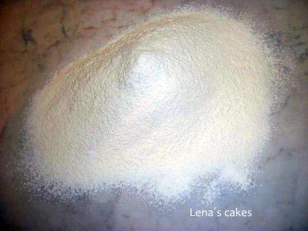 Κοσκινίζουμε το αλεύρι με τα υπόλοιπα στερεά υλικά.