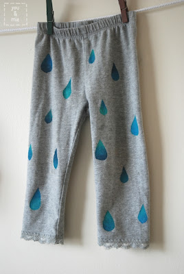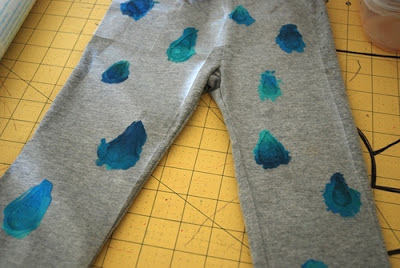 - Βάψτε προσεχτικά το παντελονάκι δημιουργώντας μπλε σταγόνες βροχής.