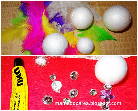 πώς να την φτιάξετε…!Γιατί πολύ απλά το μόνο που χρειάζεται να κάνετε είναι να πάρετε τις αφρολεξένιες σας μπαλίτσες και να κολλήσετε επάνω ότι σας αρέσει,όπως σας αρέσει και τα στολίδια σας είναι έτοιμα!