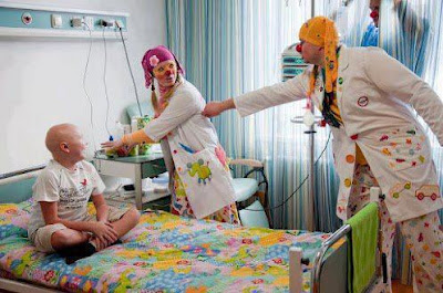 Έτσι λοιπόν ,όταν για ένα χρονικό διάστημα εργάστηκε σε μεγάλο νοσοκομείο παιδιών με καρκίνο,σκέφτηκε να ντυθεί κλόουν για να δώσει χαρά σε αυτά το τόσο πονεμένα πλασματάκια!