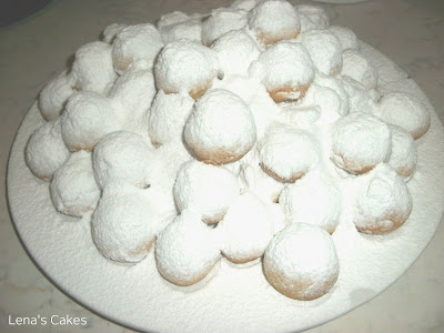 Μόλις βγούν από το φούρνο, τους ακουμπάτε σε αλουμινόχαρτο πασπαλισμένο με άχνη. Ραντίζετε με ανθόνερο, πριν κρυώσουν και πασπαλίζετε με μπόλικη άχνη. Στοιβάζετε σε πιατελίτσα και ξαναρίχνετε λίγη άχνη από πάνω.