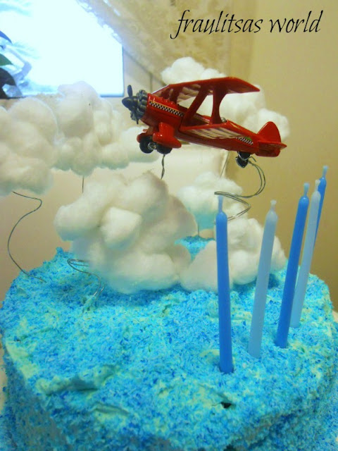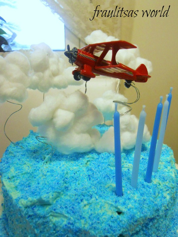το πάρτι της Σοφίας για τον γιο της. Ενθουσιάστηκα με την τούρτα, αλλά δεν είμαι επαγγελματίας. Οπότε αυτοσχεδίασα. Έφτιαξα σύννεφα από βαμβάκι, τα πέρασα σε σύρμα, το ίδιο έκανα και με το αεροπλάνο και όλα αυτά τα κάρφωσα επάνω στην τούρτα που είχε το χρώμα του ουρανού.