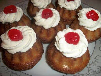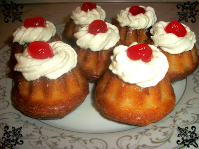 Όταν κρυώσουν γαρνίρετε με λίγο σαντιγύ και κερασάκια.