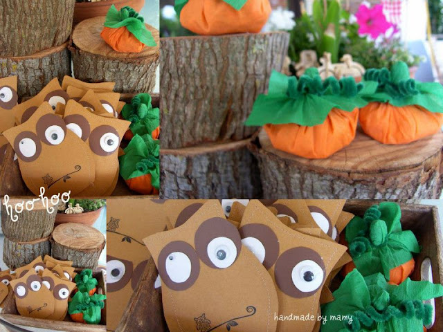 Τα σακουλάκια κουκουβάγιες και οι κολοκύθες γεμάτα καραμελάκια για να γλυκαθούν και οι μεγάλοι!!!!