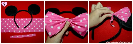 Για τα αυτάκια της Minnie θα διακοσμήσετε μια απλή μαύρη στέκα μαλλιών καταλλήλως…..