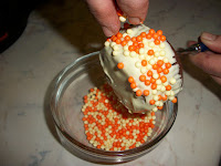Σε ένα πιατάκι ή μπολάκι πασπαλίζετε με ότι χρωματιστό θα διακοσμήσετε.