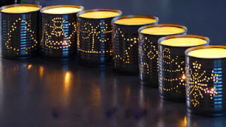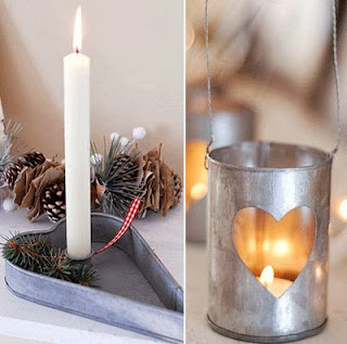 Μέσα σε πλατιά μεταλλικά κουτιά όπως π.χ εκείνα από μπισκότα μπορείτε μέχρι και να …στολίσετε ένα μίνι χριστουγεννιάτικο δέντρο από ένα κλαρί έλατου ή πεύκου, στα πιο ψηλά και …στρουμπουλά δώστε με μπογιά την εμφάνιση του ‘Aγιου Βασίλη και φυσικά τα …απόλυτα χριστουγεννιάτικα φαναράκια – κηροπήγια είναι αυτά που θα φτιάξετε πολύ εύκολα με μερικά άδεια κονσερβοκούτια για να τοποθετήσετε κεράκια ή μια σειρά χριστουγεννιάτικα φωτάκια.
