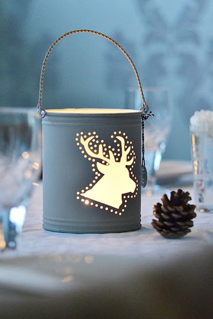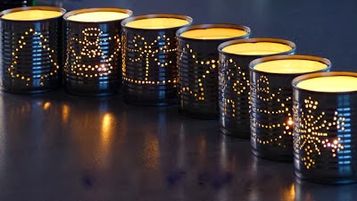 Μέσα σε πλατιά μεταλλικά κουτιά όπως π.χ εκείνα από μπισκότα μπορείτε μέχρι και να …στολίσετε ένα μίνι χριστουγεννιάτικο δέντρο από ένα κλαρί έλατου ή πεύκου, στα πιο ψηλά και …στρουμπουλά δώστε με μπογιά την εμφάνιση του ‘Aγιου Βασίλη και φυσικά τα …απόλυτα χριστουγεννιάτικα φαναράκια – κηροπήγια είναι αυτά που θα φτιάξετε πολύ εύκολα με μερικά άδεια κονσερβοκούτια για να τοποθετήσετε κεράκια ή μια σειρά χριστουγεννιάτικα φωτάκια.