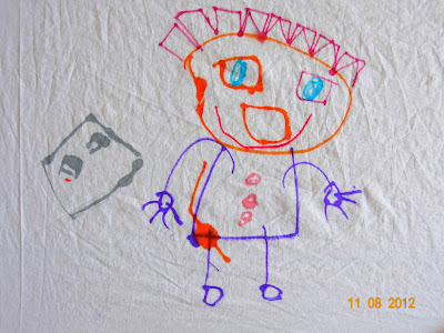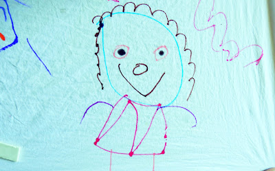 Μια απο τις πολλές φορές που συναντήθηκαν για παιχνίδι ..η μαμά Γιώτα σκαρφίστηκε τη ζωγραφική πάνω σε σεντόνι!